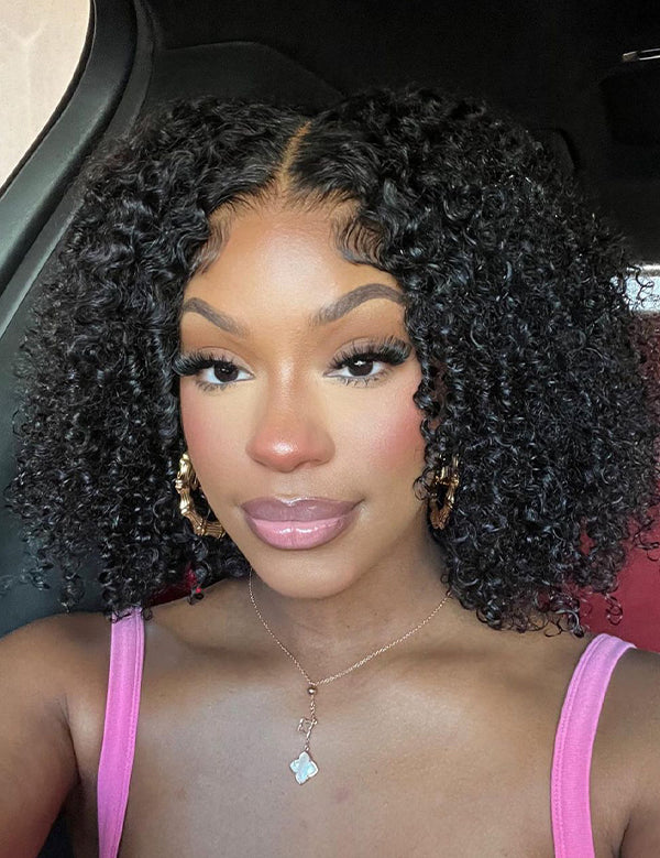 Wavymy Kinky Curly Bob Wigs 4x4 Lace Closure Short Human Hair Wigs 180% Density