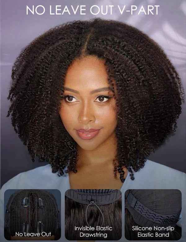 Wavymy Upgrade Afro Curly Glueless V Part Wig Human Hair Wear Go No Leave Out V Part Wig For Women 180% Density