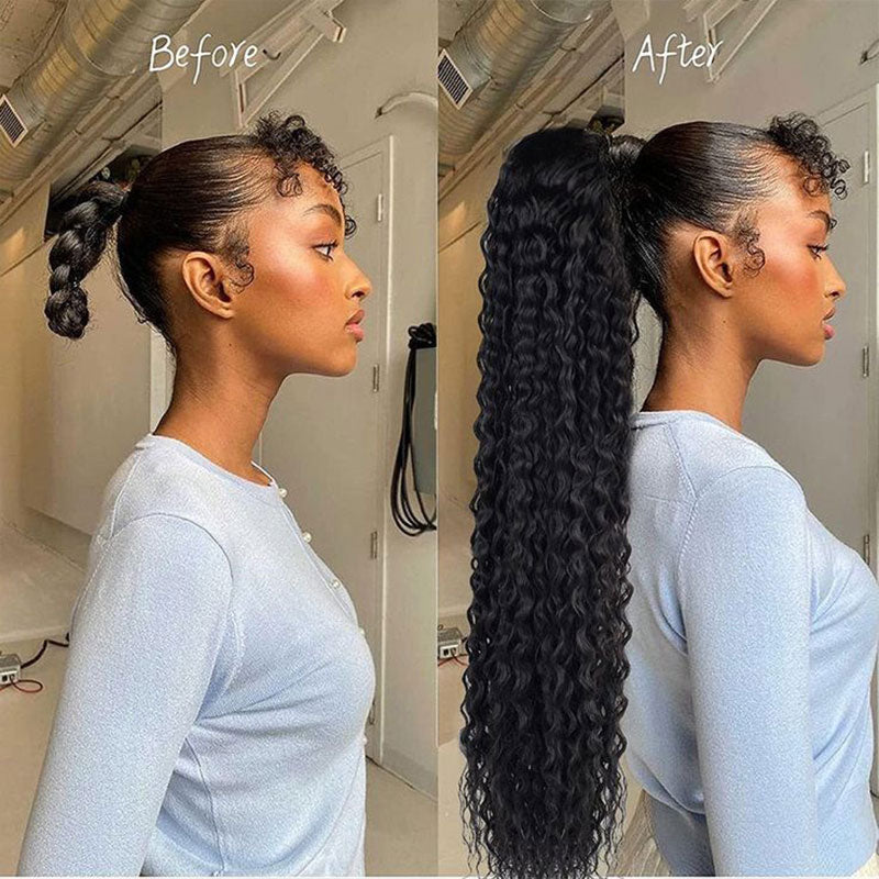 Wavymy Kinky Curly Drawstring Ponytail Wrap Around Ponytail Human Hair