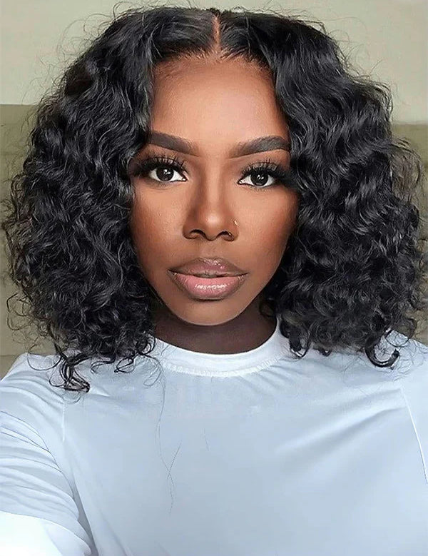 Wavymy Deep Wave Bob Wigs 4x4 Lace Closure Pre-Bleached Short Human Hair Wigs 180% Density