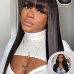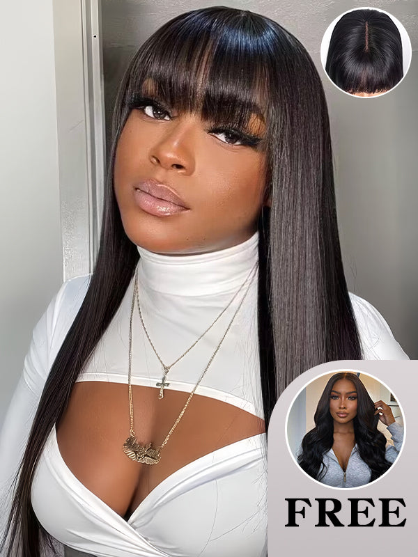 $0 Get Free Wig | Glueless Straight Wigs With Bangs & Wear Go Body Wave 4x6 Pre-bleached Wigs180 Density