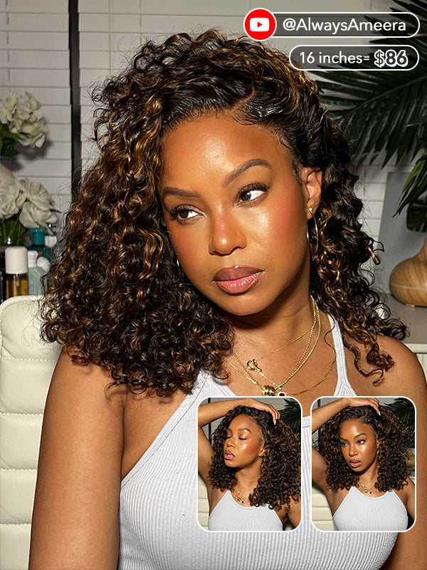 highlight water wave glueless 7x5 lace wig middle part style