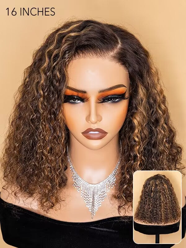 Wavymy Wear Go Casual Blonde Highlights Water Wave 4x6 Lace Wigs Dome Cap Glueless with Natural Hairline Wig