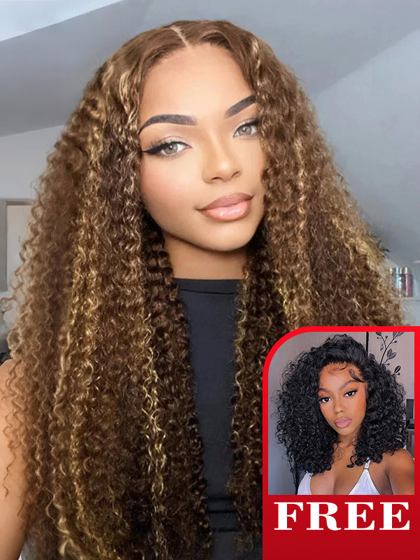 Buy 1 Get 1 | Highlight Kinky Curly 13x4x1 T-Part Lace Wig 30 Inches & 13x4 Lace Frontal Kinky Curly 14 Inches