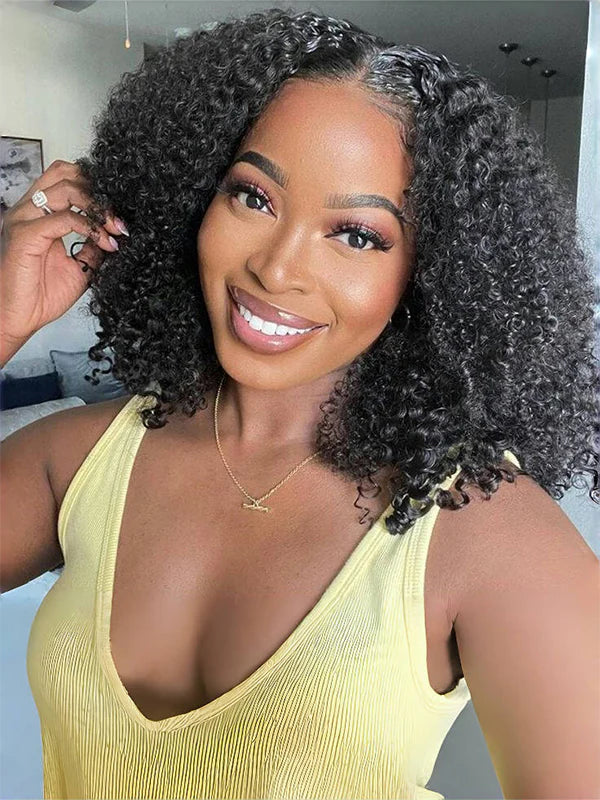 Flash Sale | Kinky Curly 13*4*1 Lace Part Wigs Human Hair Short Bob Wig