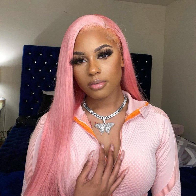 Wavymy 13x4 Lace Front Pink Color Virgin Human Hair Straight Wig Long Hairstyles