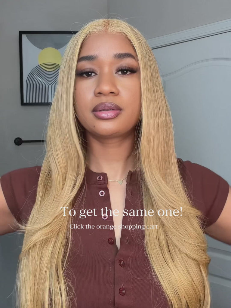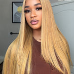Wavymy 27 Colored Honey Blonde Straight Wear Go Wigs Glueless 7x5 Lace Closure Wig 180% Density