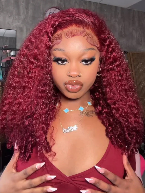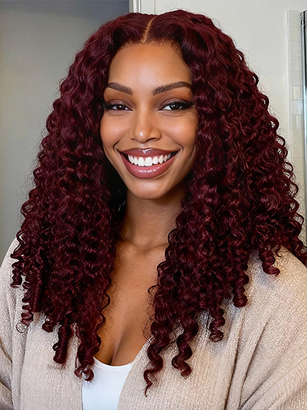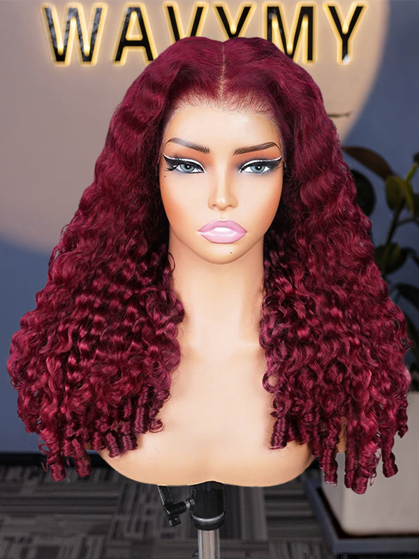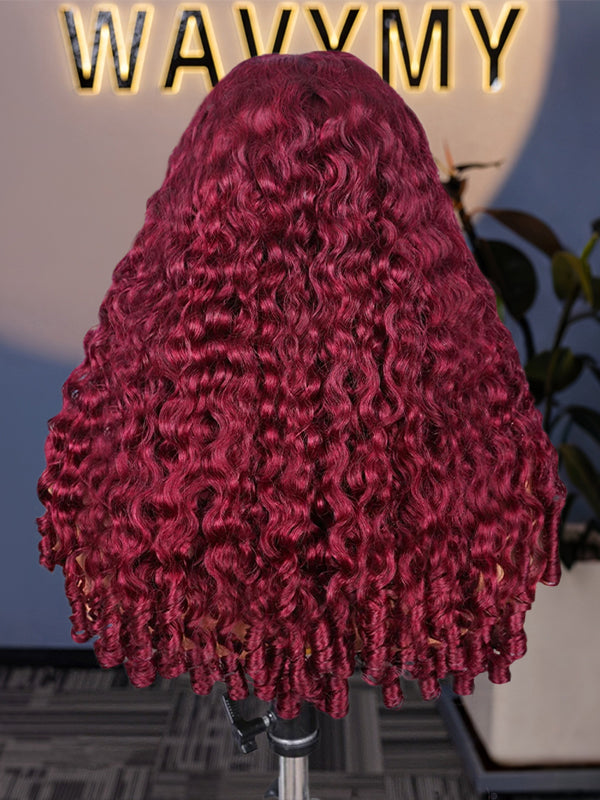 Wavymy 99J Burgundy Burmese Curly M-Cap 9x6 Pre-Cut Lace Wear & Go Wig Beginner Friendly 180% Density