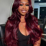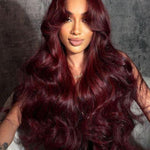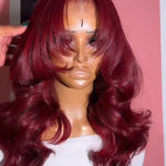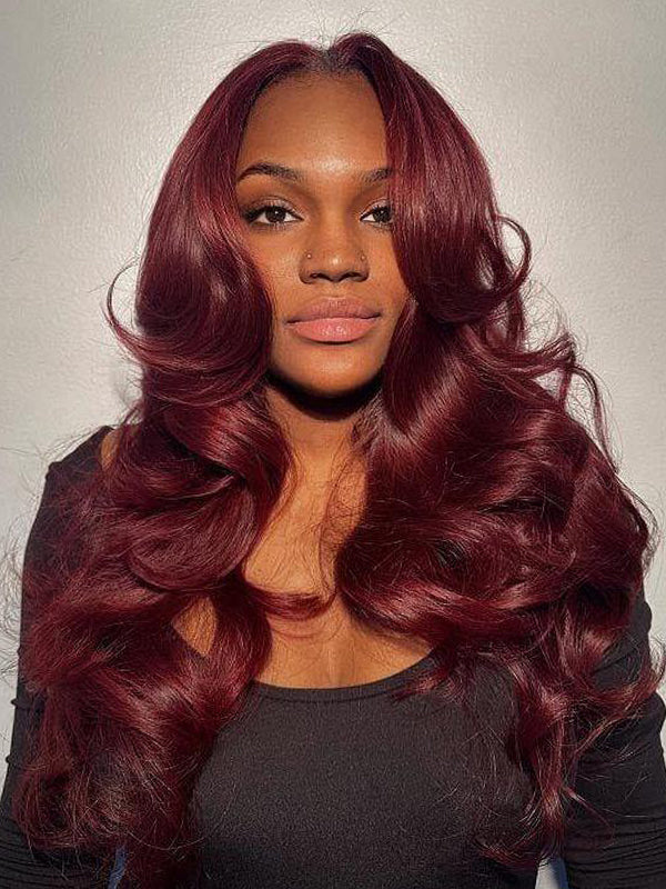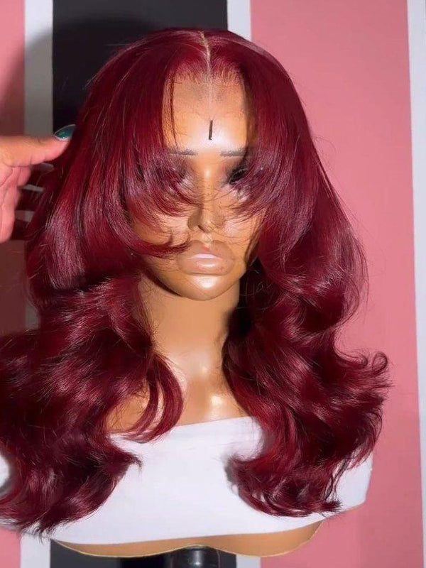 Wavymy 99J Burgundy Layered Cut Loose Wave Wear Go Glueless Wigs 6x4 Lace Closure Wigs 180% Density