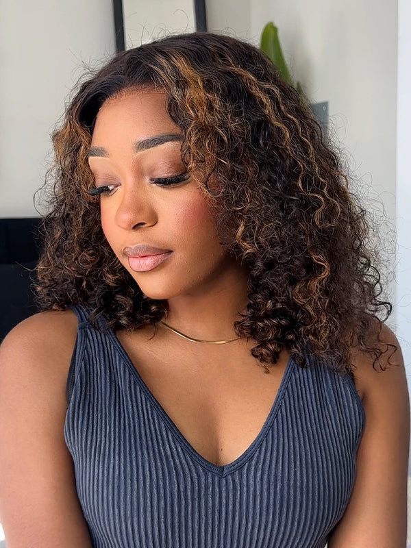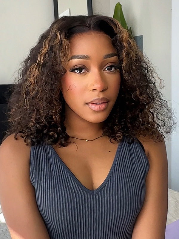Wavymy 9x6 T-Part Lace Blonde Highlight Water Wave Pre-Cut Lace Wear Go Glueless Wigs 180% Density