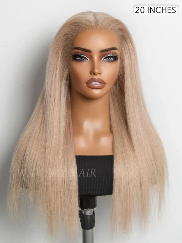 Wavymy Ash Blonde Straight Hair 7x5 Pre-Cut Lace Pre-Plucked Wear Go Glueless Wig 180% Density