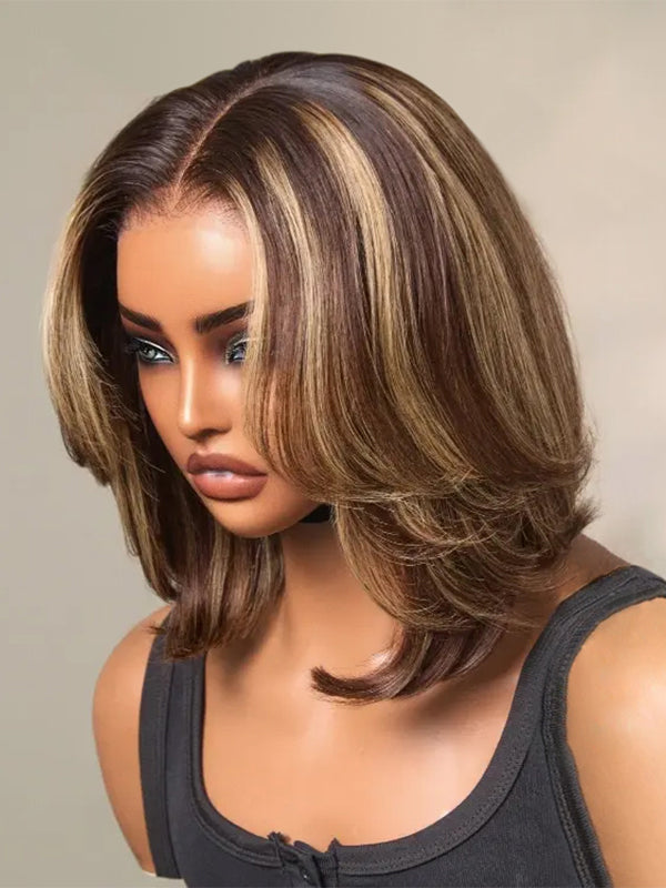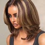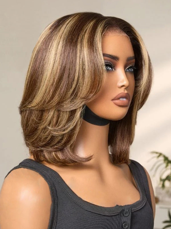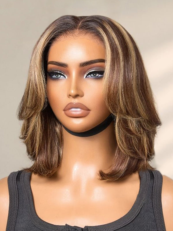 Wavymy Blonde Highlight Short Layered Bob Wig Wear Go Glueless 7x5 Lace Pre-Cut Lace Human Hair Wig