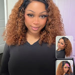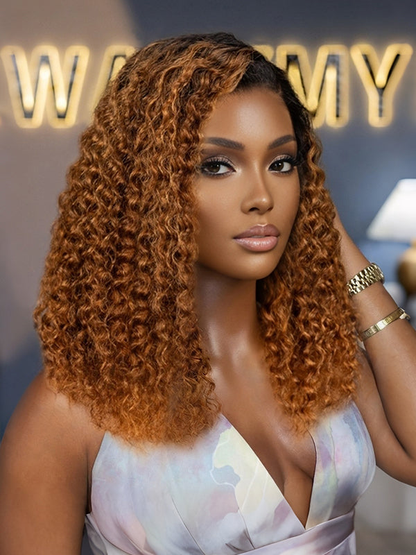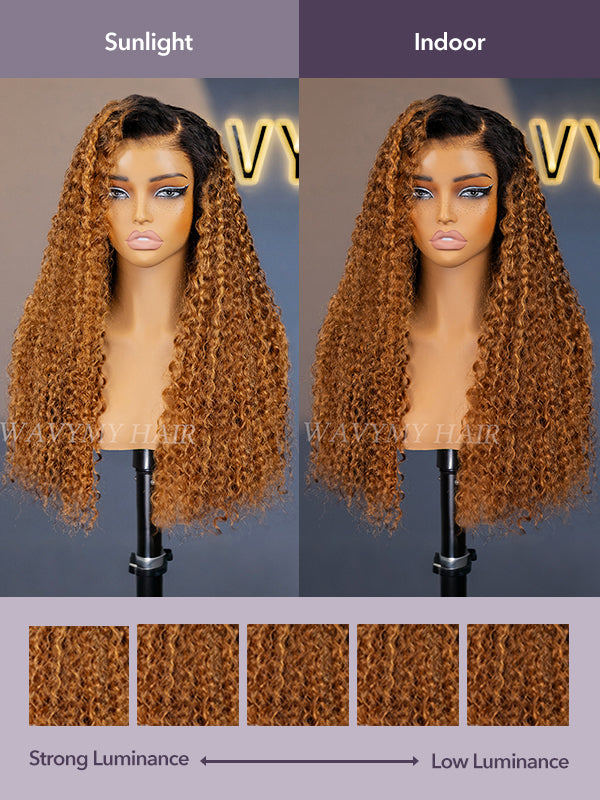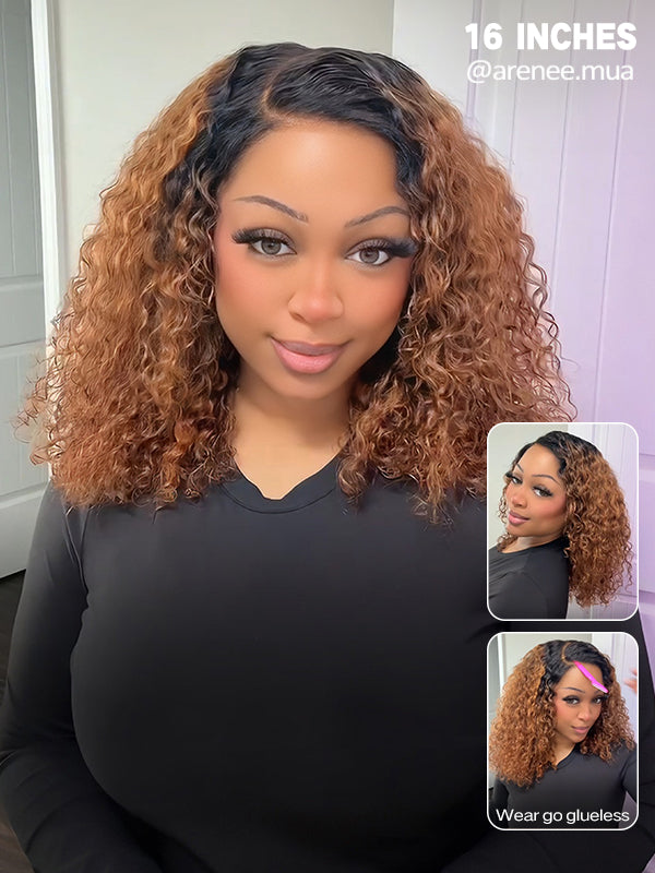 Wavymy Ombre Blonde Highlights Water Wave with Black Roots 7x5 Lace Wigs Wear & Go Glueless Wigs Human Hair 180% Density