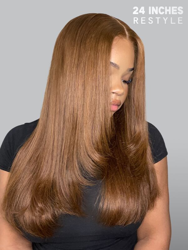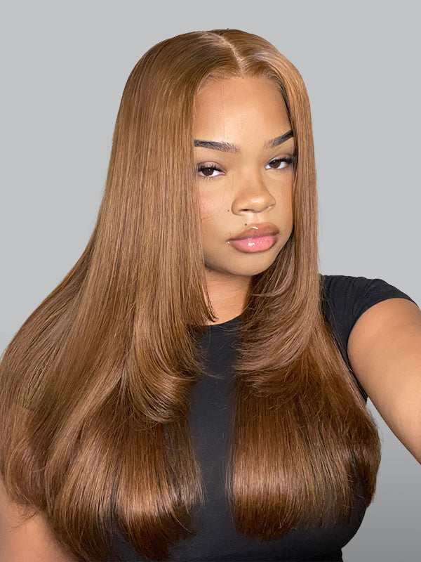 Wavymy Chestnut Brown Layered Cut Straight M-Cap Wear Go 9x6 Wigs 180% Density 100% Human Hair