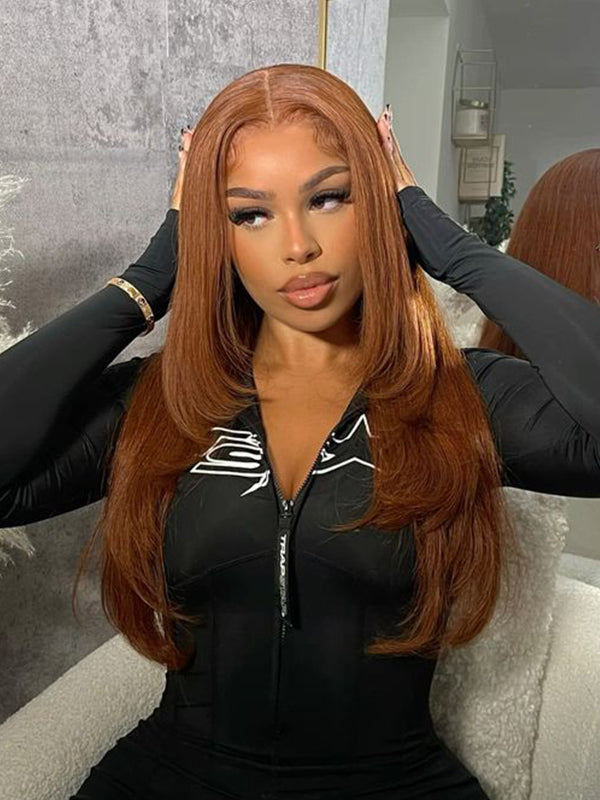 chestnut brown straight layered glueless wigs