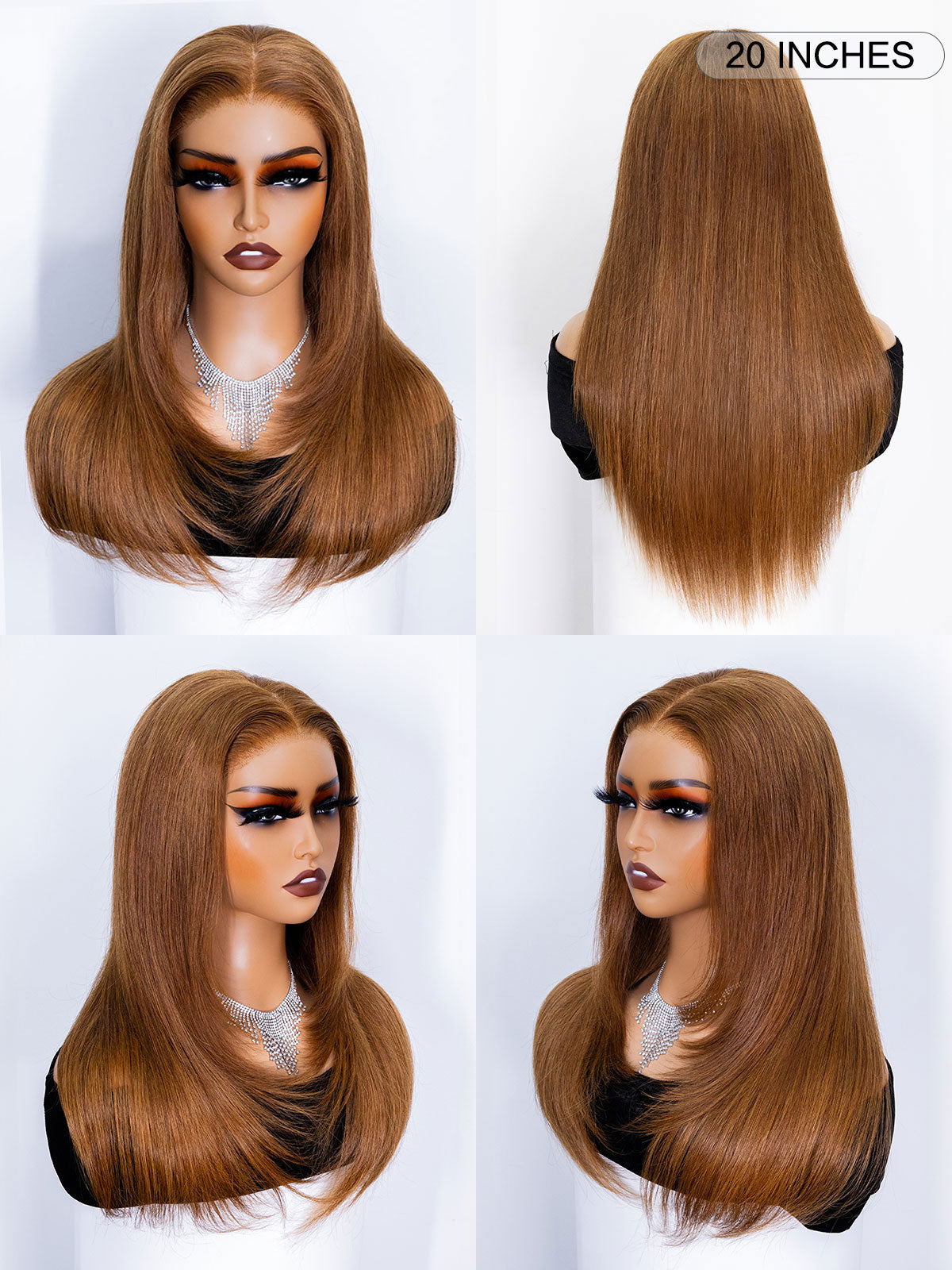 24 inch human hair chestnut brown straight layered glueless wig