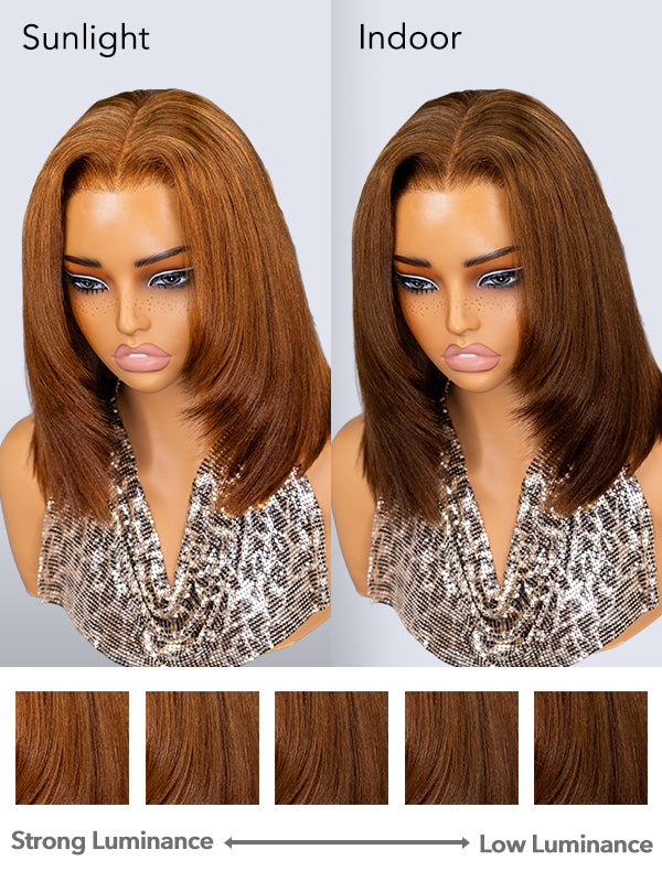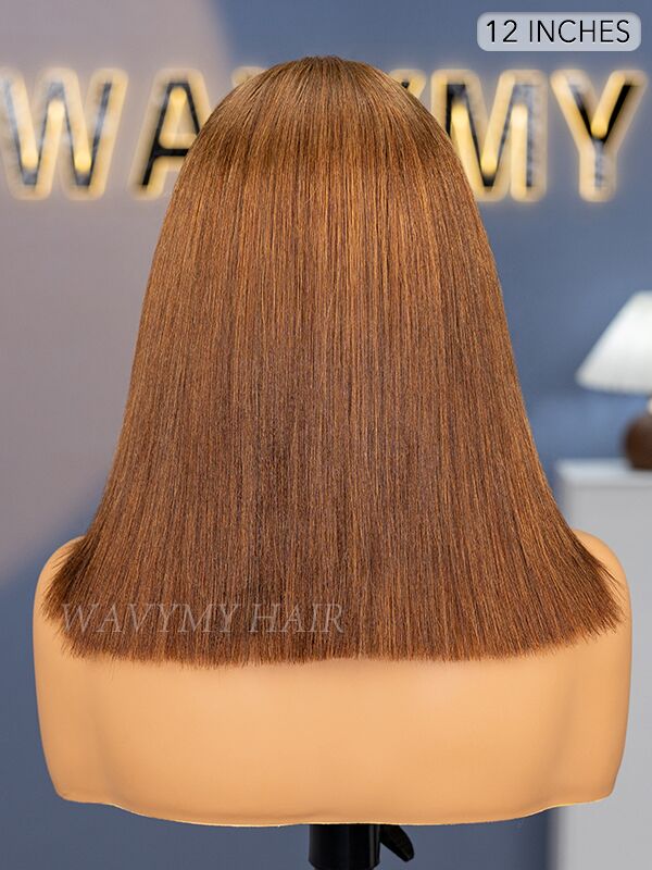 Wavymy Chestnut Brown Yaki Straight Layered Cut Silky Bob Wig 9x6 T-Part Lace Wig Drawstring Wear Go Glueless Wigs 180% Density