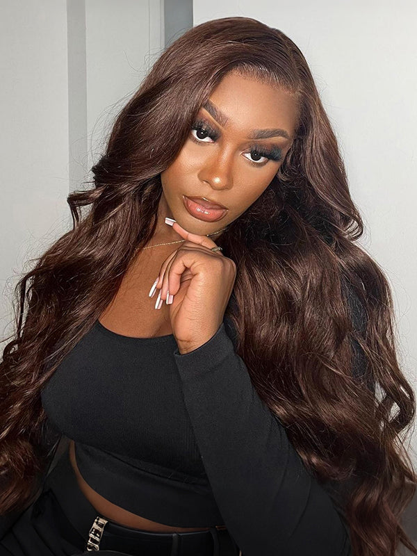Wavymy Chocolate Brown Face-Framing Curtain Bangs Layered Cut Body Wave Pre-Cut Lace Wear Go Glueless Wigs 180% Density