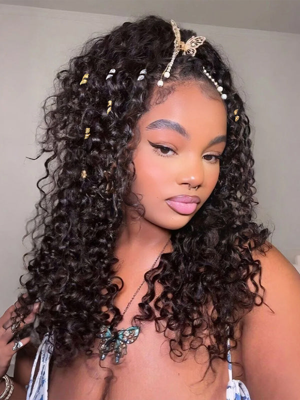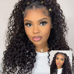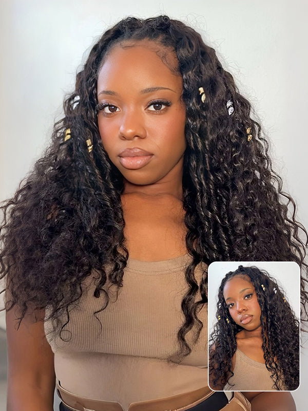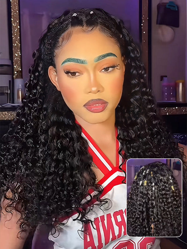 Wavymy Drawstring Braid Half Wig Water Wave Upgrade No Lace No Glue Human Hair Wigs 180% Density