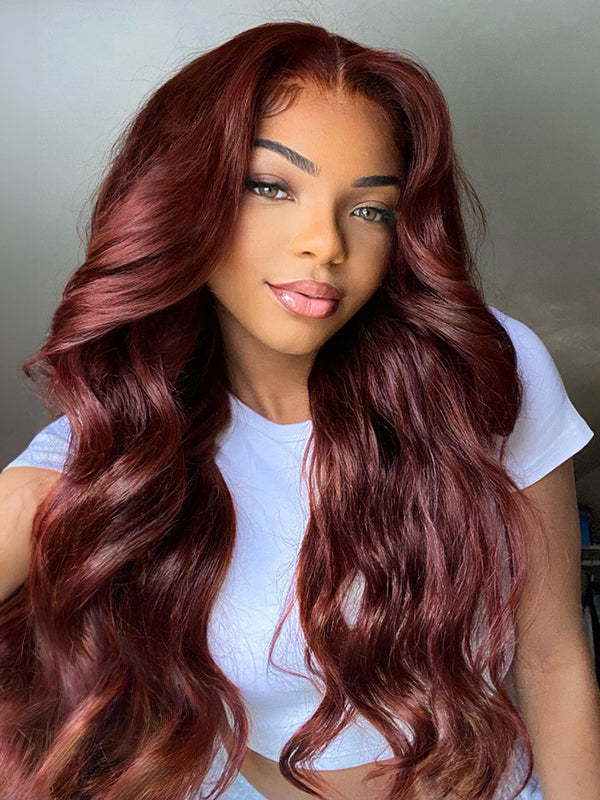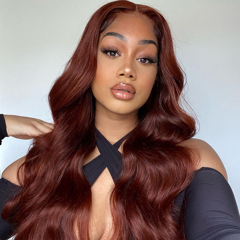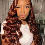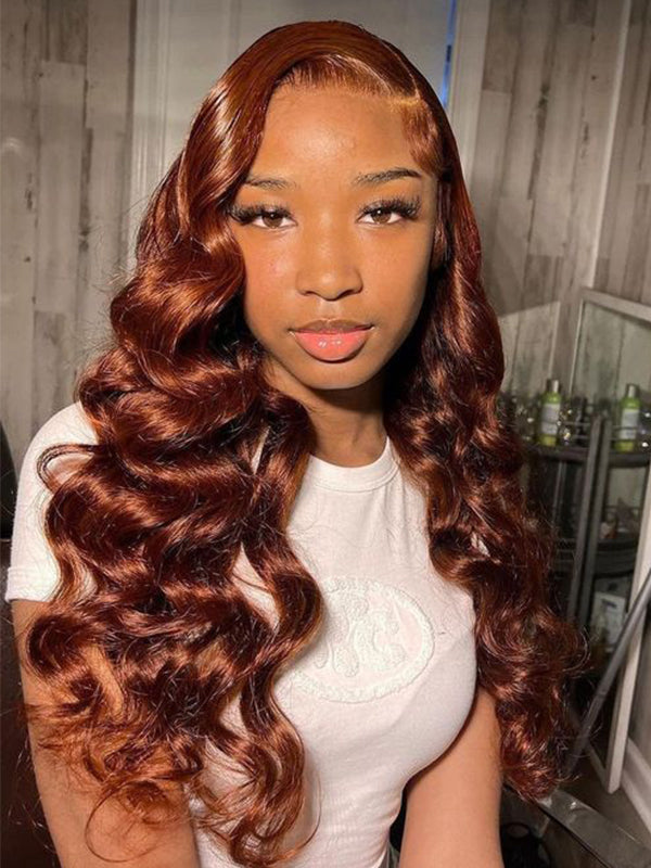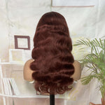 Wavymy Wear Go Wigs Reddish Brown Color Glueless Dome Cap 4x6 Lace Closure Wig Body Wave Wigs 180% Density