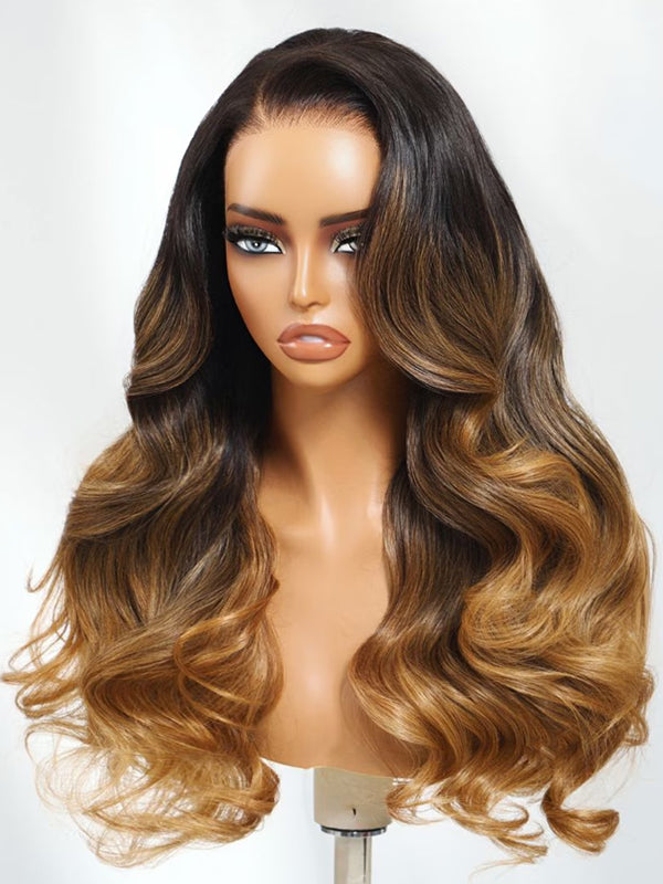 Wavymy Golden Caramel Balayage Body Wave Upgrade 13x6 Max Lace Frontal Wear & Go Wigs Dome Cap Glueless Wigs 180% Density