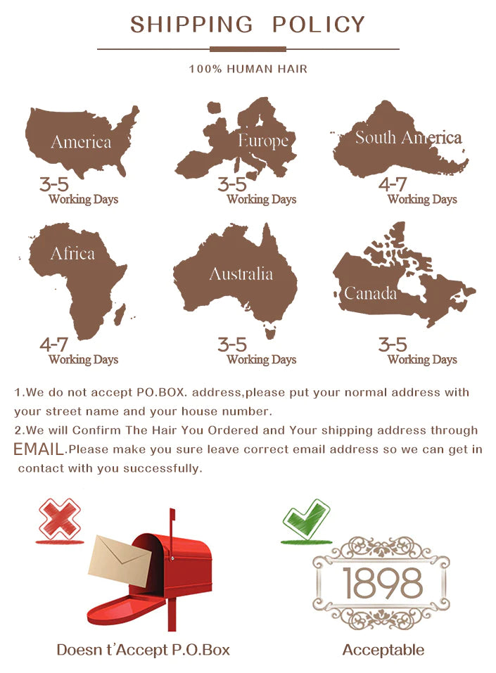 2. If the hair is wavy or curly style, we don't suggest to comb it. If you have to, please comb it with hands or wide-teeth brush gently. Tight teeth brush will ruin the hair original shape and make it fizzy and feels like tangle! Please always comb the hair from the ends and work your way up.