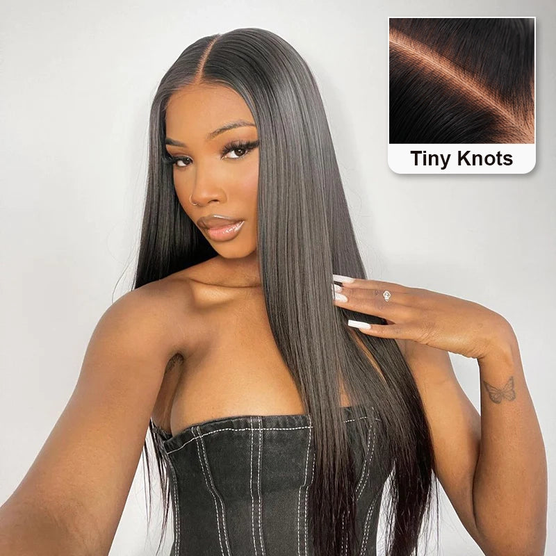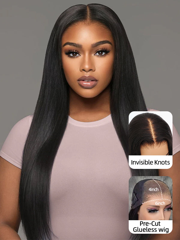 Wavymy Pre-bleached HD Lace Wear Go Glueless Wigs Dome Cap Straight 4x6 Lace Closure Wigs 180% Density