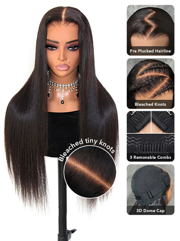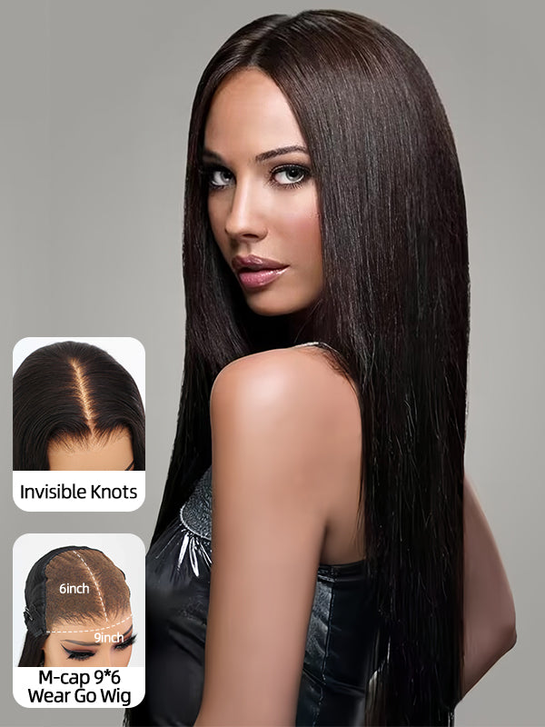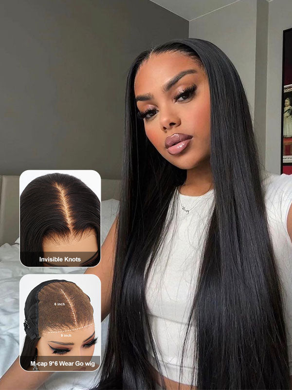 Wavymy M-Cap 9x6 Lace Wear Go Pre Cut Glueless Straight Pre-bleached Wigs 180% Density