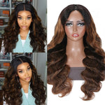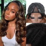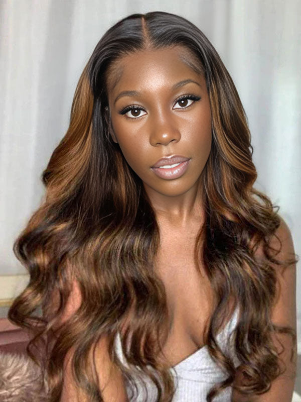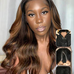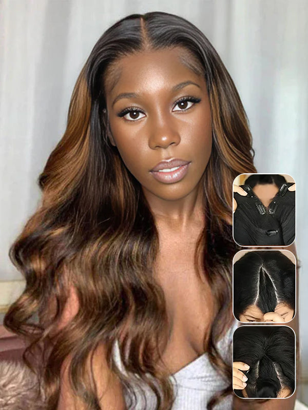 Wavymy Balayage Highlight Body Wave V Part Wigs Beginner Friendly No Glue No Sew No Gel Human Hair Thin Part Customized Colors Wig 180% Density