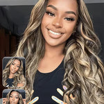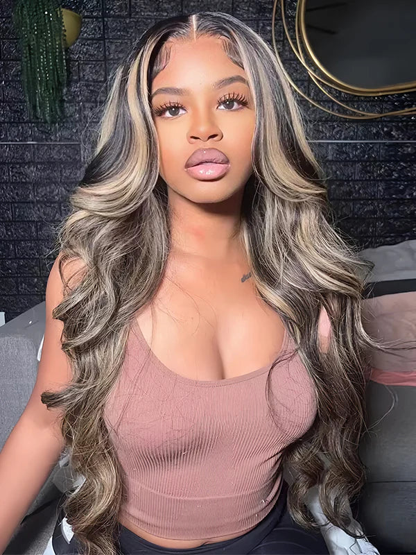 Wavymy Highlight Balayage Color Wig Body Wave 13x4 Lace Front Wigs Blonde Brown Color Pre Plucked Lace Wigs