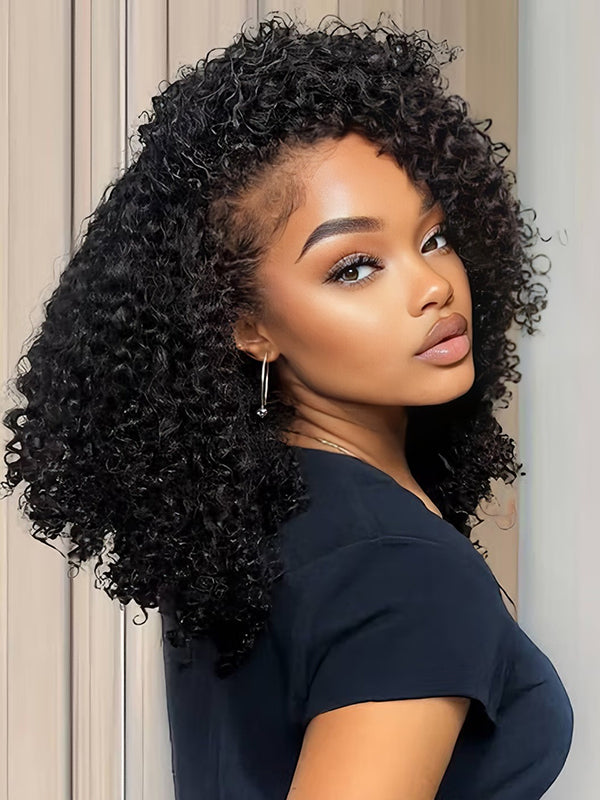 Wavymy Kinky Curly Half Wig No Lace No Glue Human Hair Wigs 180% Density 18 Inches Clearance Sale