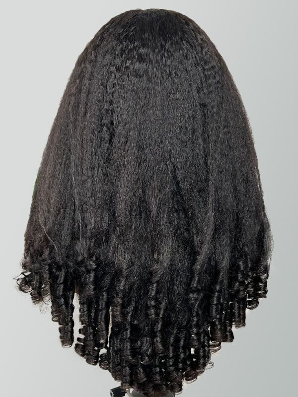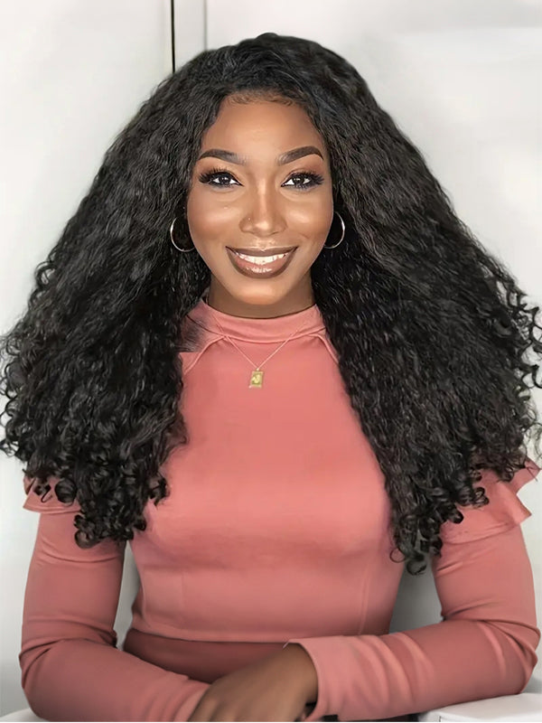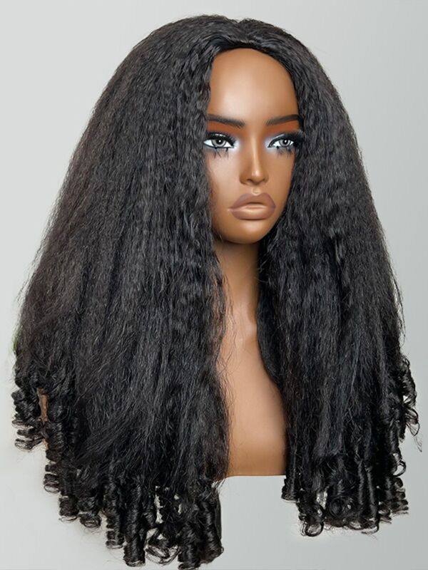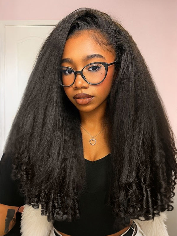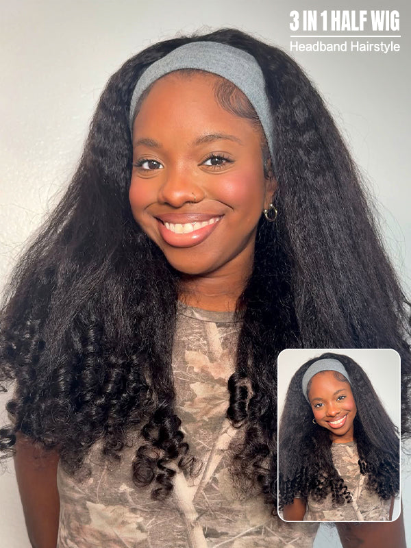 Wavymy Kinky Straight Half Wig with Spiral Curly Ends Beginner Friendly No Lace No Glue Human Hair 180% Density