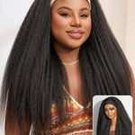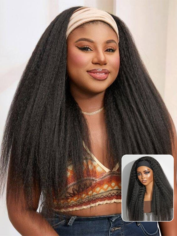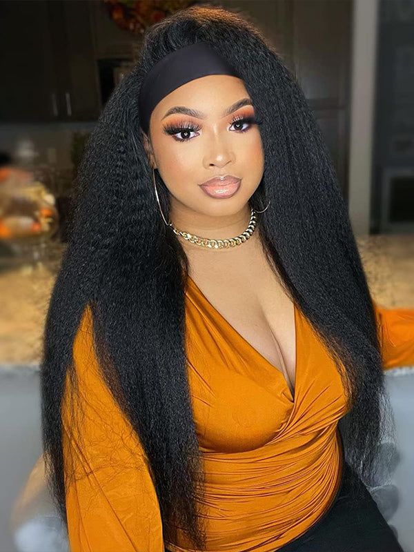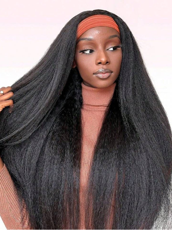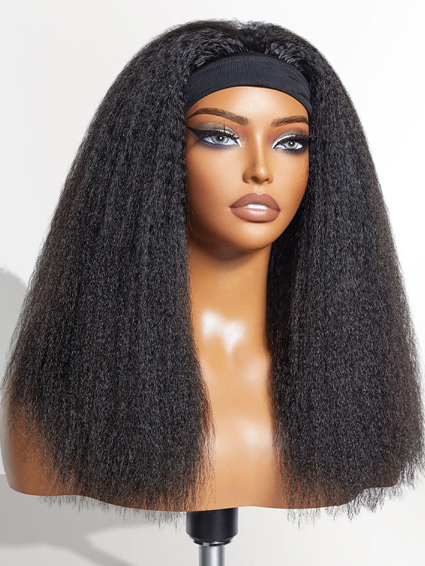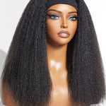 Wavymy Kinky Straight Headband Wig Pre-attached Scarf Natural Color Glueless Wig Human Hair 180% Density