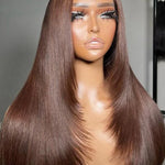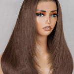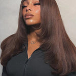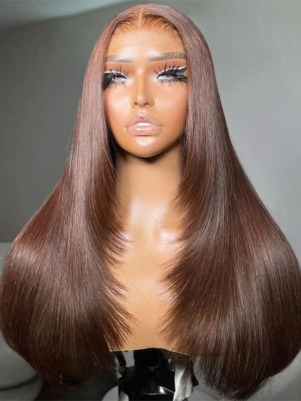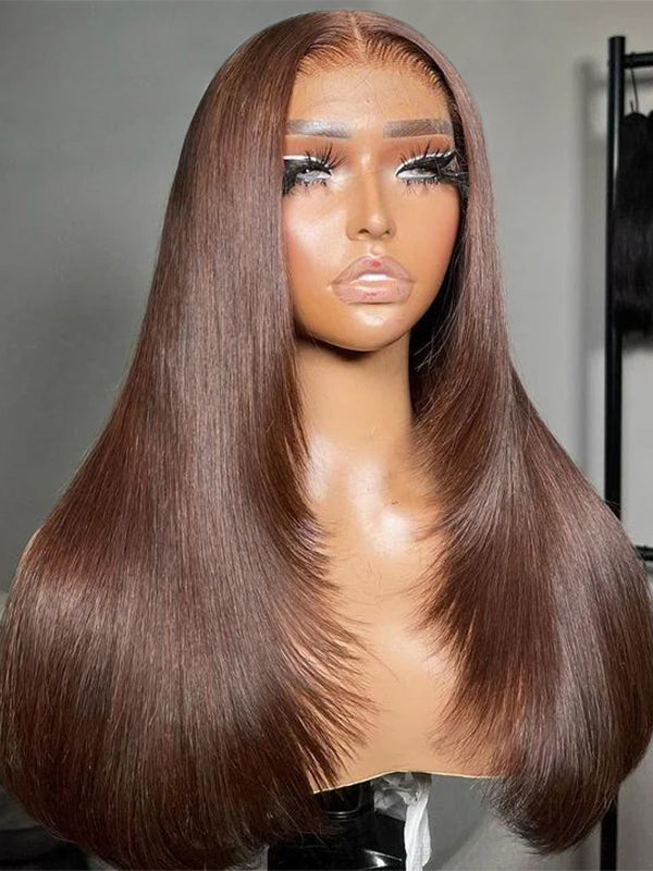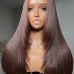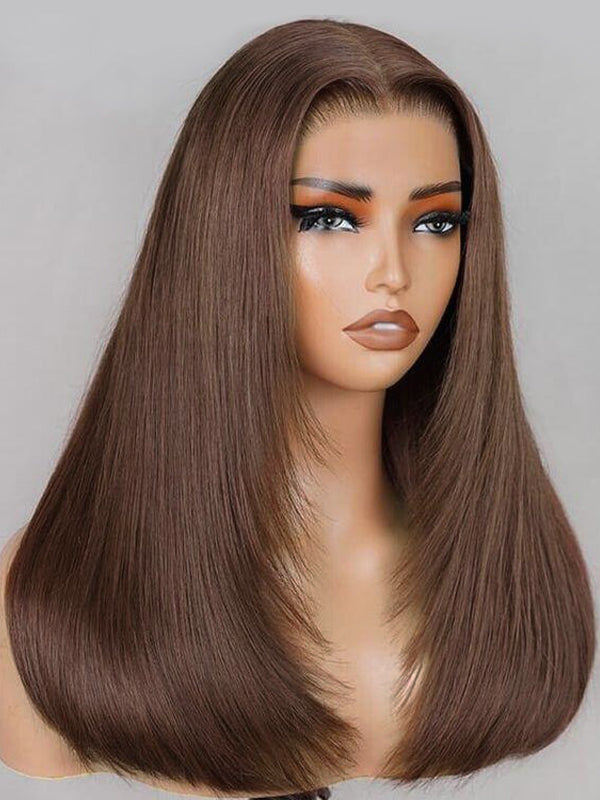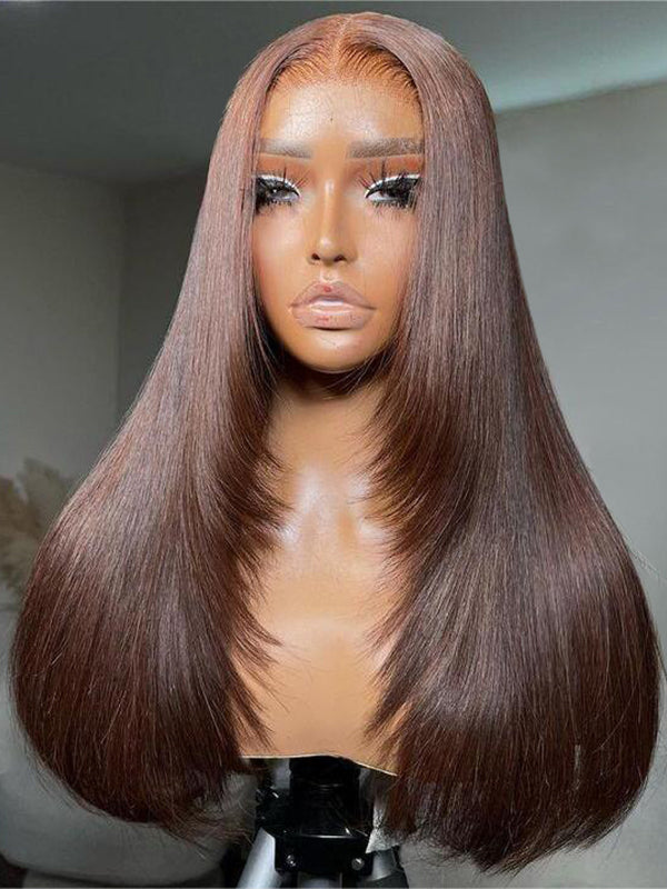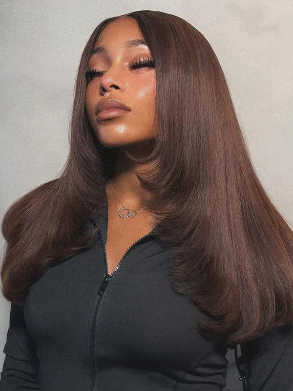 Wavymy Layered Cut Chocolate Brown Wear Go Wigs Straight 7x5 Lace Closure Wigs 100% Human Hair