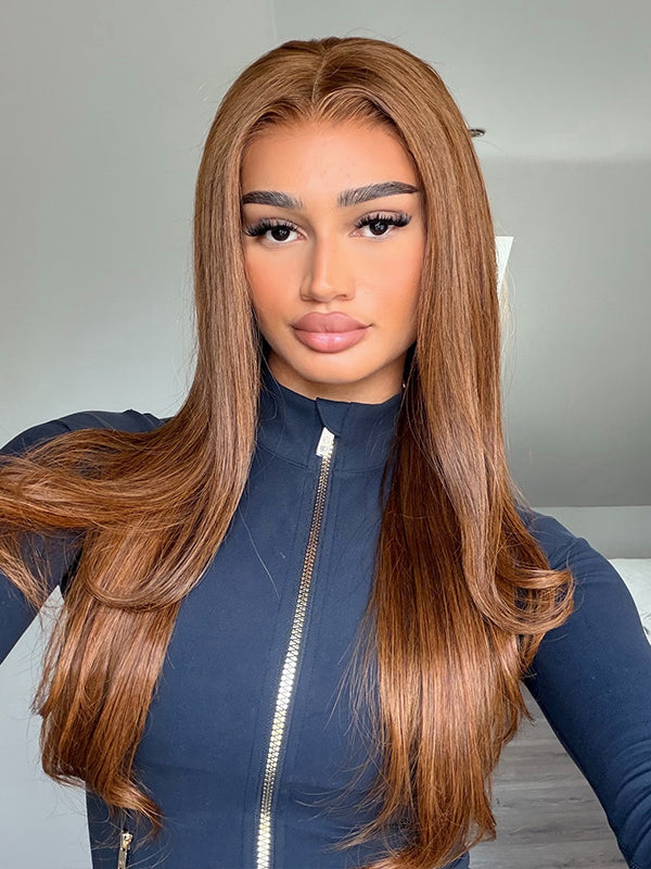 Wavymy Layered Cut Chestnut Brown Wear Go Wigs 180% Density Straight 7x5 Lace Closure Wigs 100% Human Hair
