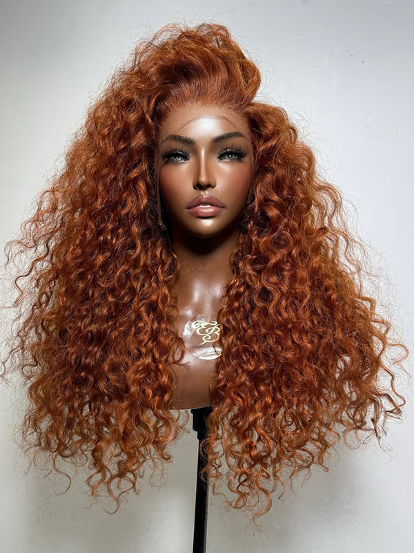 Wavymy Orange Brown Water Wave Wig 13x6 Max Lace Frontal Wig Drawstring Wear & Go Glueless Wigs 180% Density Customized Wigs