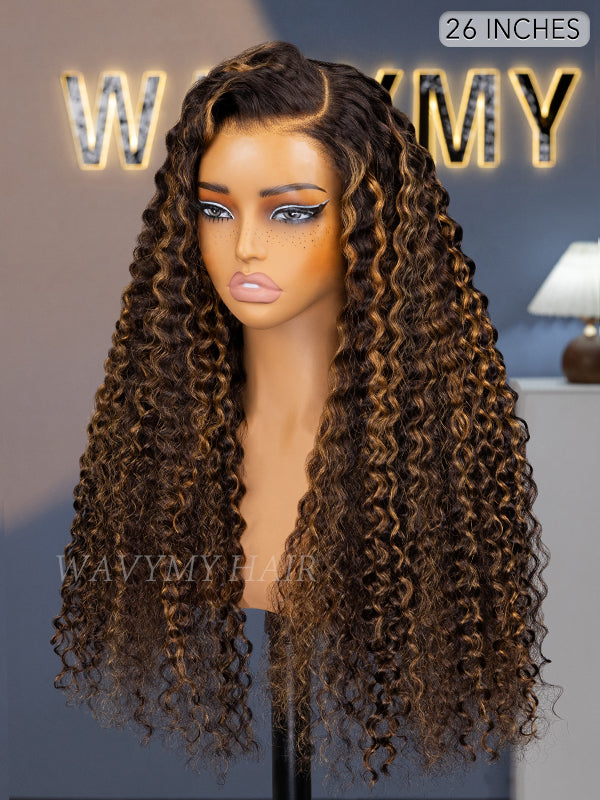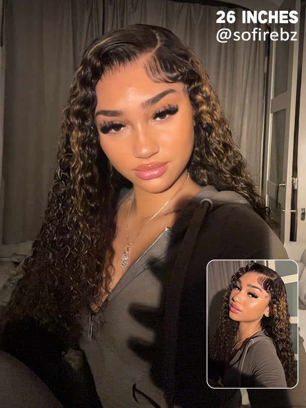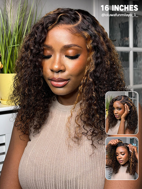 AlwaysAmeera Same | Wavymy TikTok Viral Pre-cut Lace Wear Go Casual Blonde Highlights Water Wave Minimalist 7x5 Lace Wigs Dome Cap Glueless with Natural Hairline Wig