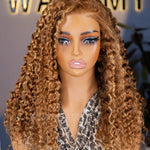 Wavymy Honey Blonde Light Highlight Wear Go Glueless Water Wave Wig 7x5 Pre-cut Pre-plucked Bleached Knots Wig 100% Human Hair