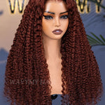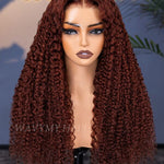 human hair 6x4 lace glueless reddish brown kinky curly wig