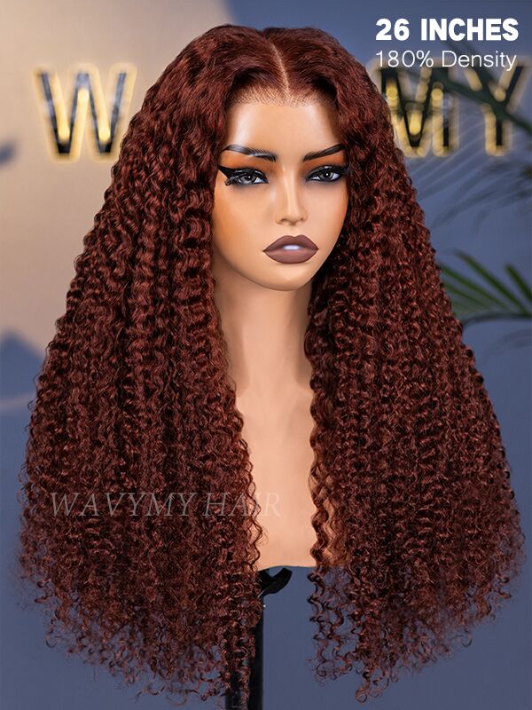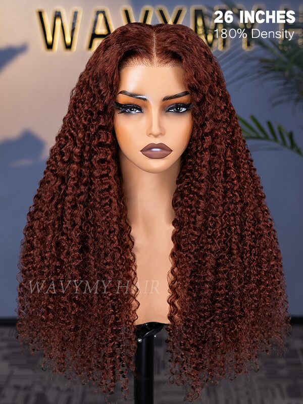 reddish brown kinky curly 6x4 glueless lace wigs