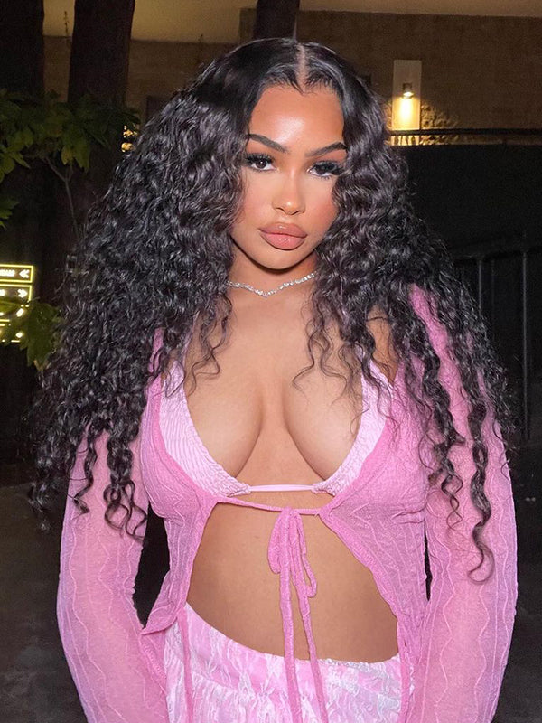 Wavymy Upgrade 9x6 T-Part Lace Water Wave Wig Pre-Plucked Wear Go Glueless Wigs 180% Density