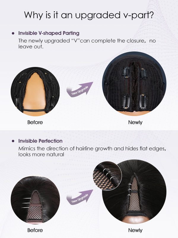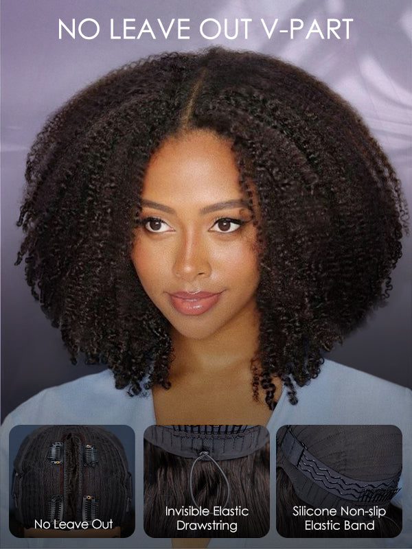 Wavymy Upgrade Afro Curly Glueless V Part Wig Human Hair Wear Go No Leave Out V Part Wig For Women 180% Density