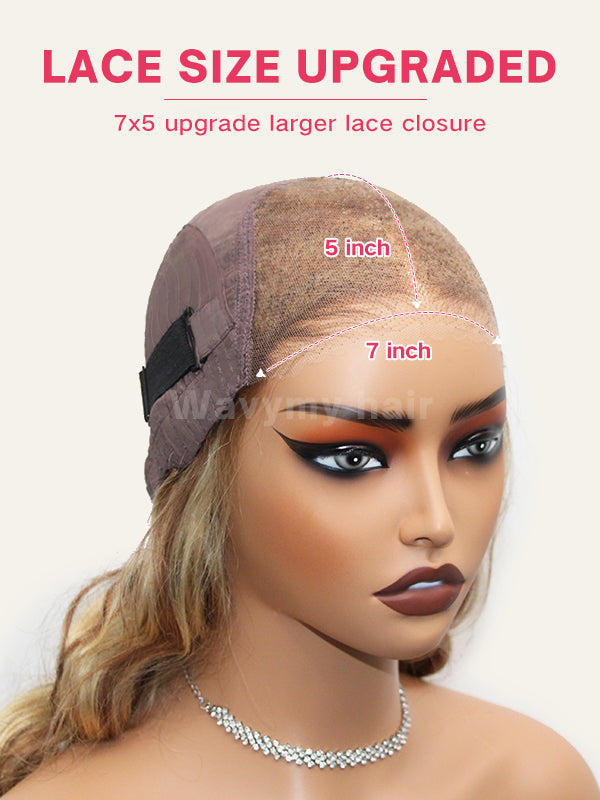 Wavymy Wear Go Glueless Wig Ash Blonde Honey Highlight Body Wave Pre-Cut 7x5 Lace Wig Preplucked with Natural Hairline