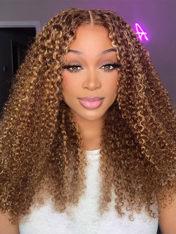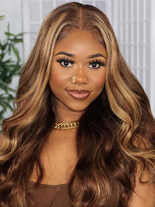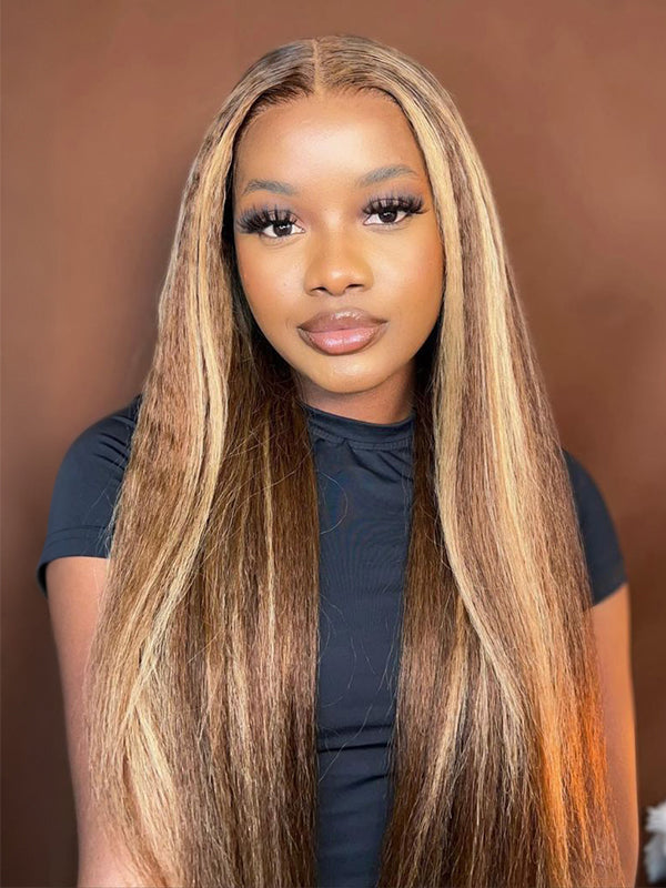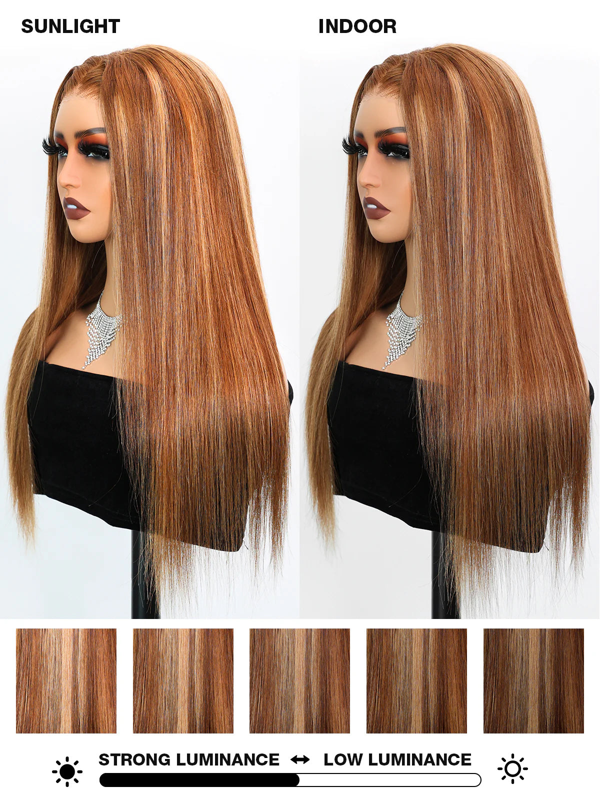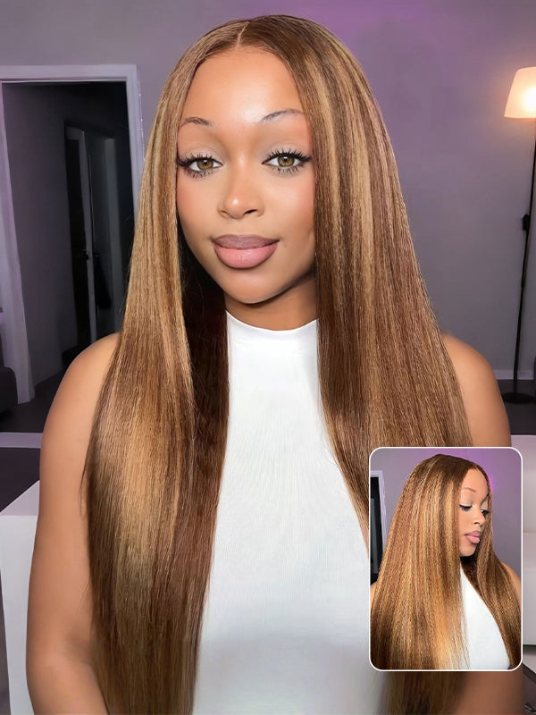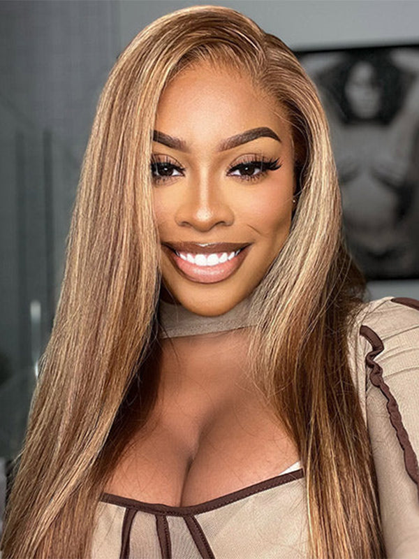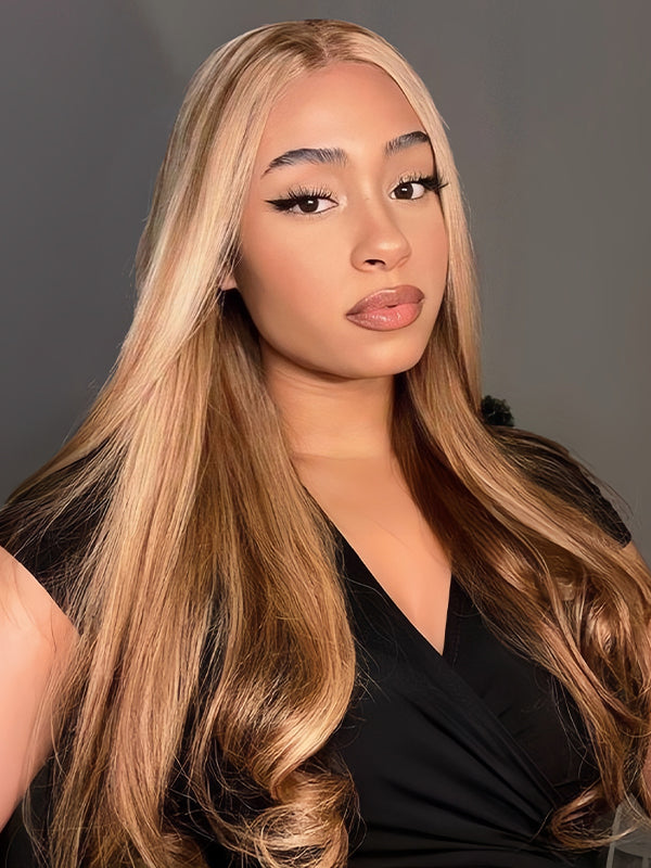 Flash Sale Wavymy Pre-cut Lace Wear Go 4/27 Honey Blonde Highlight Color Glueless Wig 7x5 Lace Closure Preplucked with Natural Hairline Wig