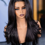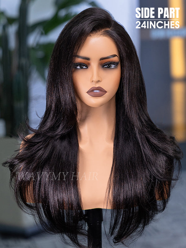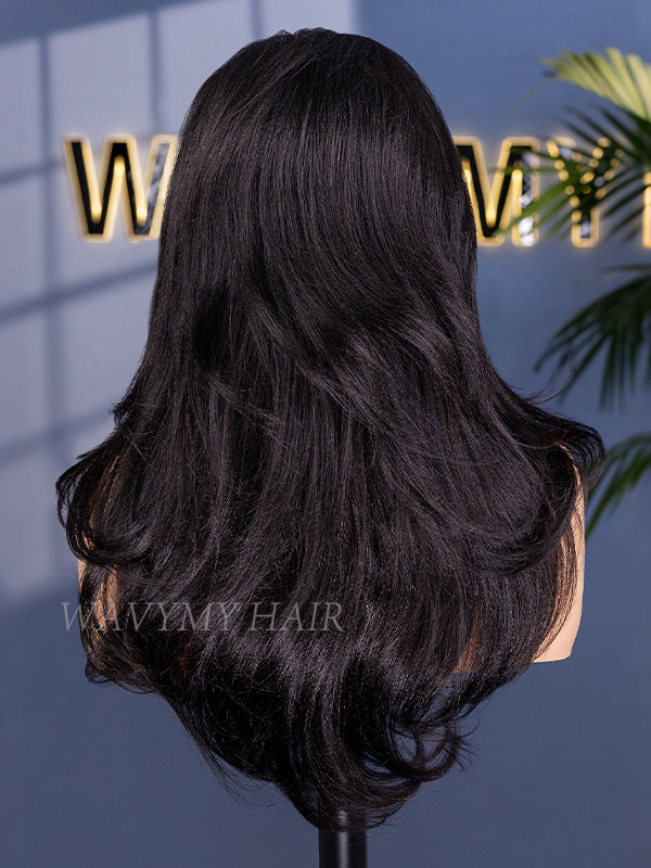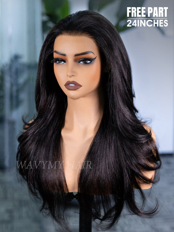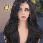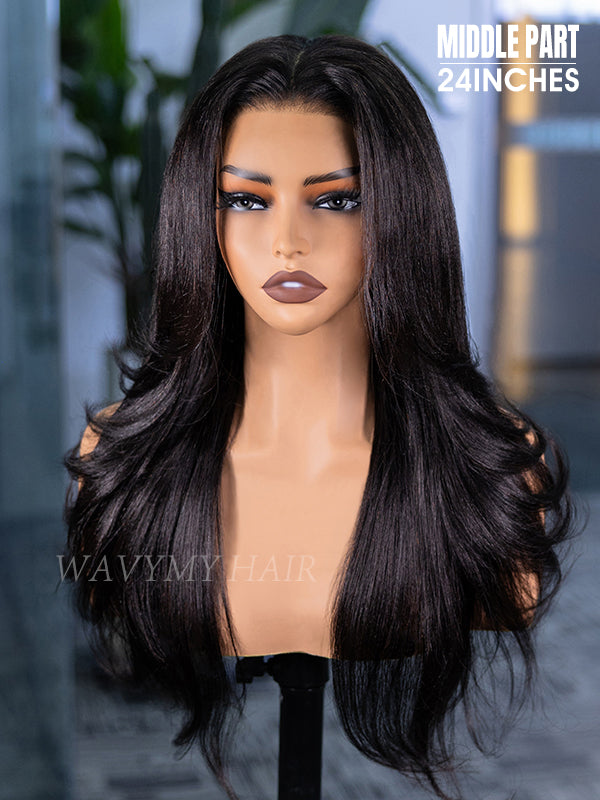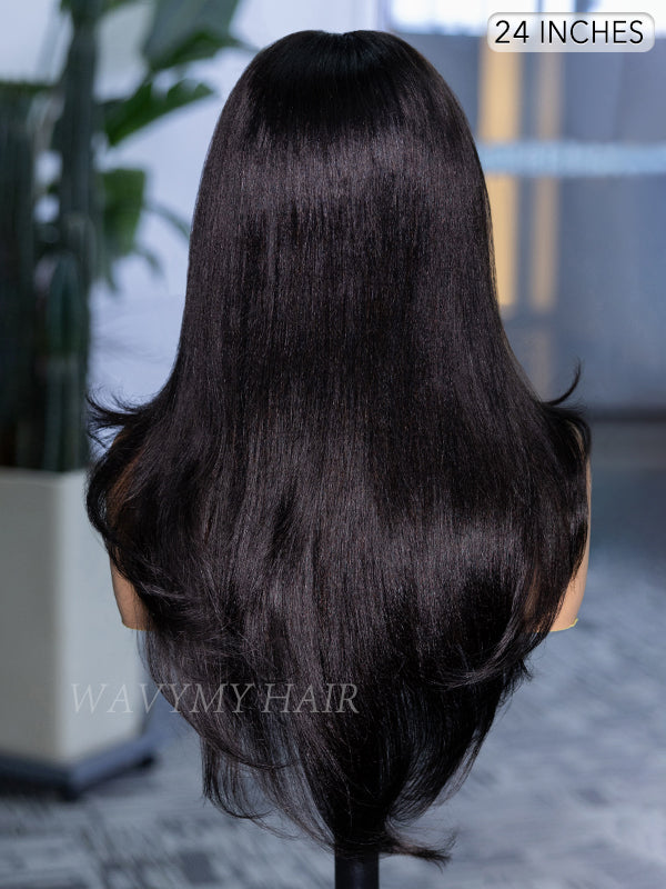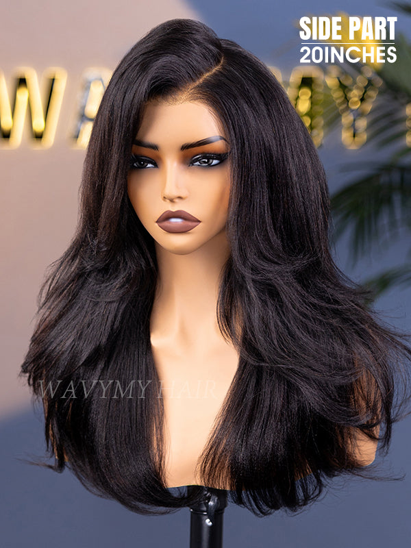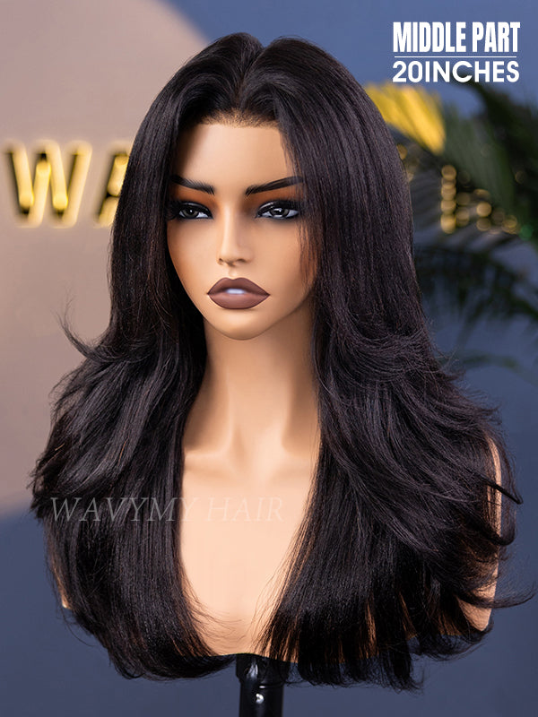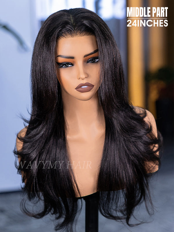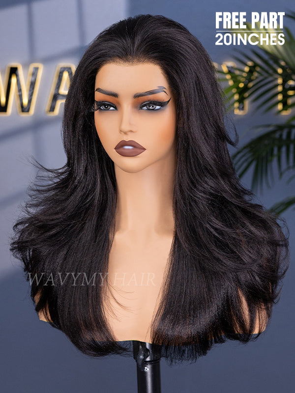 Wavymy 3 In 1 Style Yaki Lazy Waves Pre-Styled Layered Cut Hair Wear Go Glueless 7x5 Lace Wig Human Hair Wig