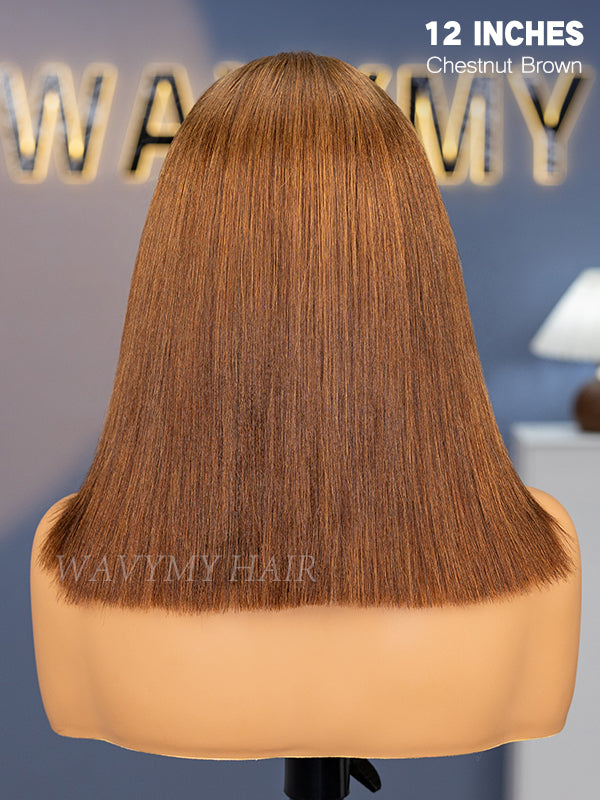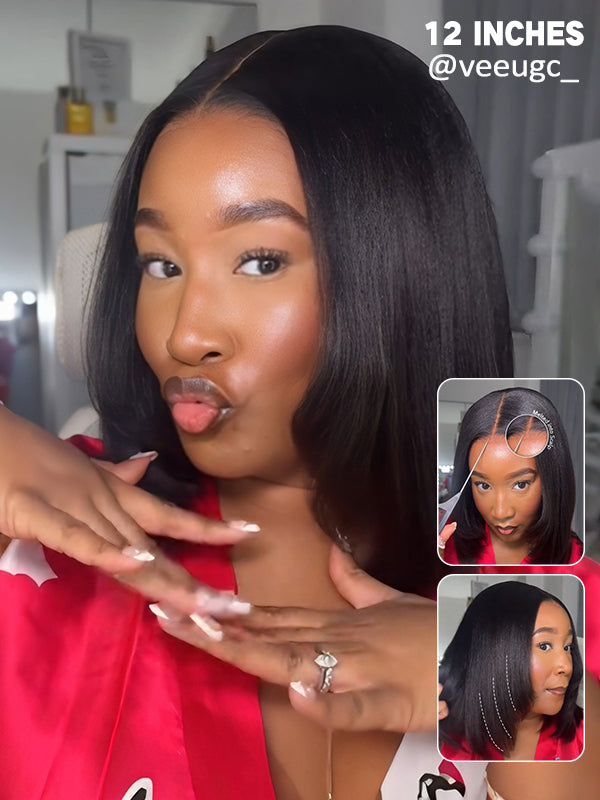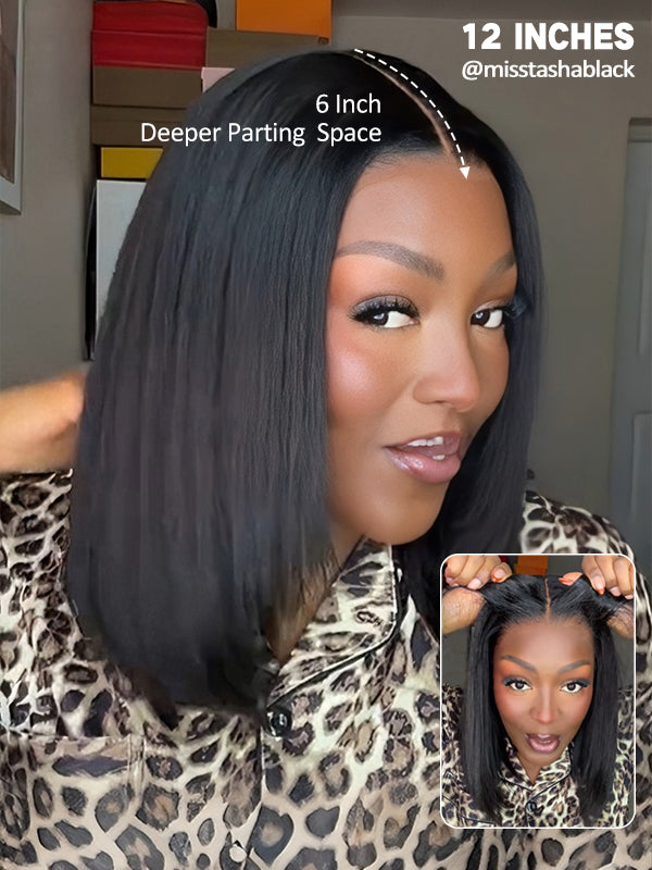 Wavymy Yaki Straight Layered Cut Silky Bob Wig Upgrade 9x6 T-Part Lace Wig Pre-Plucked Wear Go Glueless Wigs 180% Density