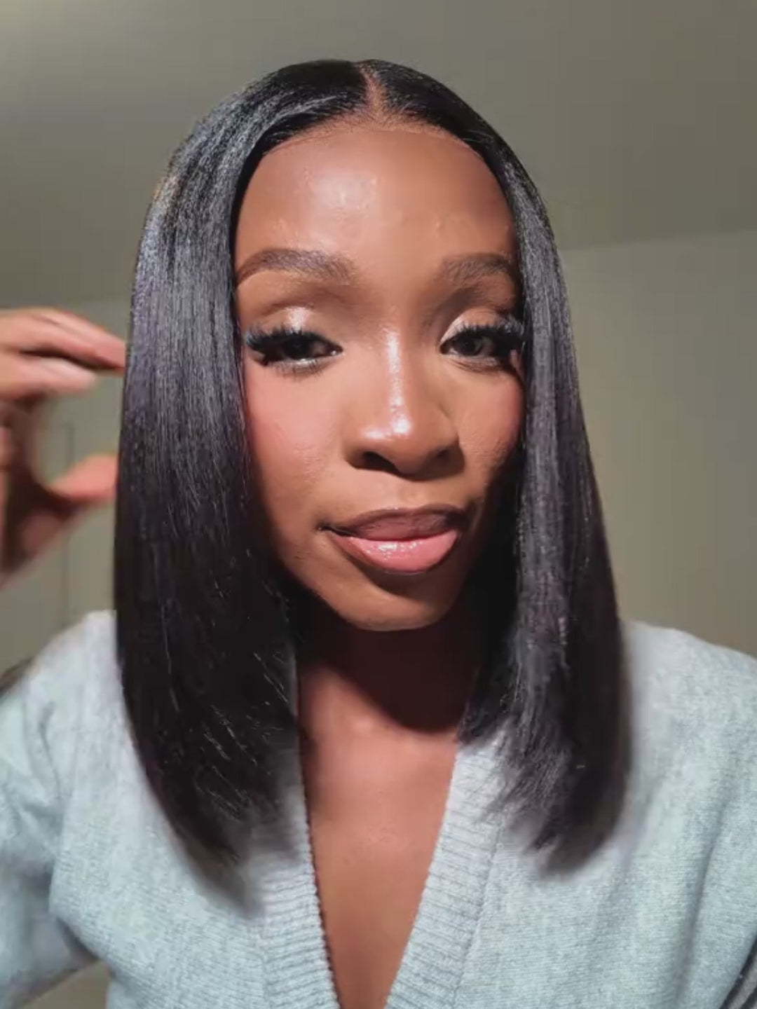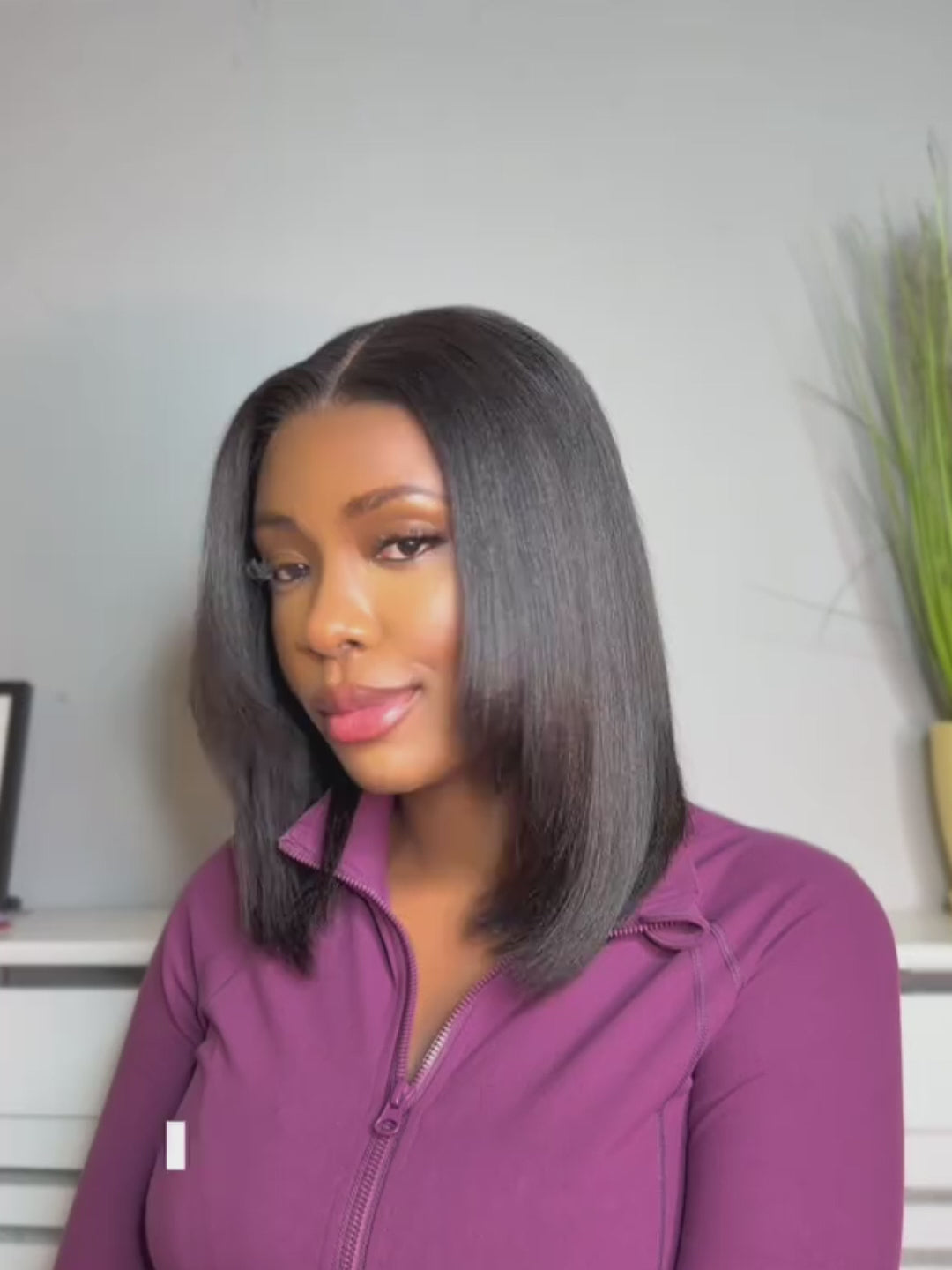 silky yaki straight layered bob wig